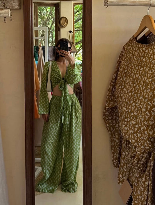 JUA SET LONG SKIRT VERSION - TERRACOTTA PALMS