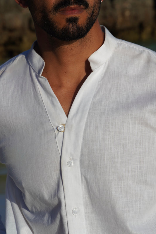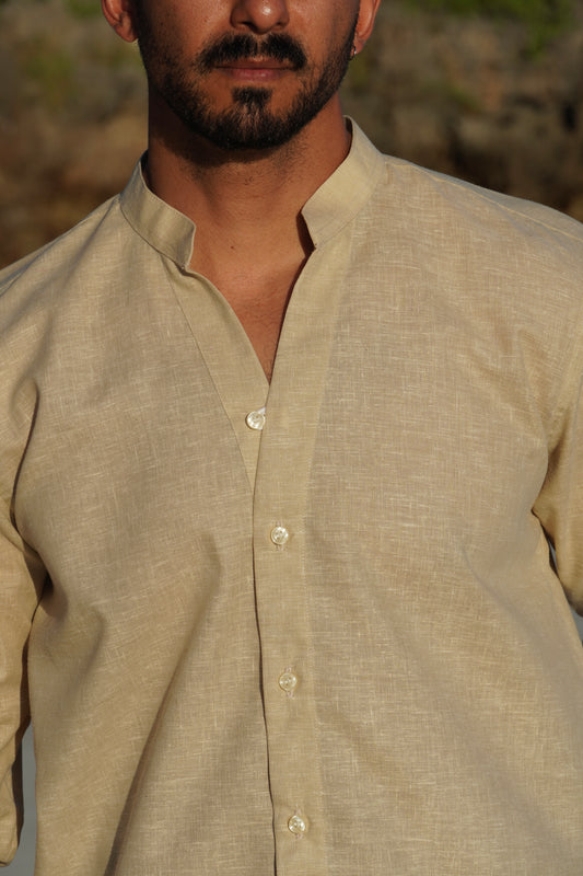 BAHARI LINEN SHIRT - LIGHT BEIGE