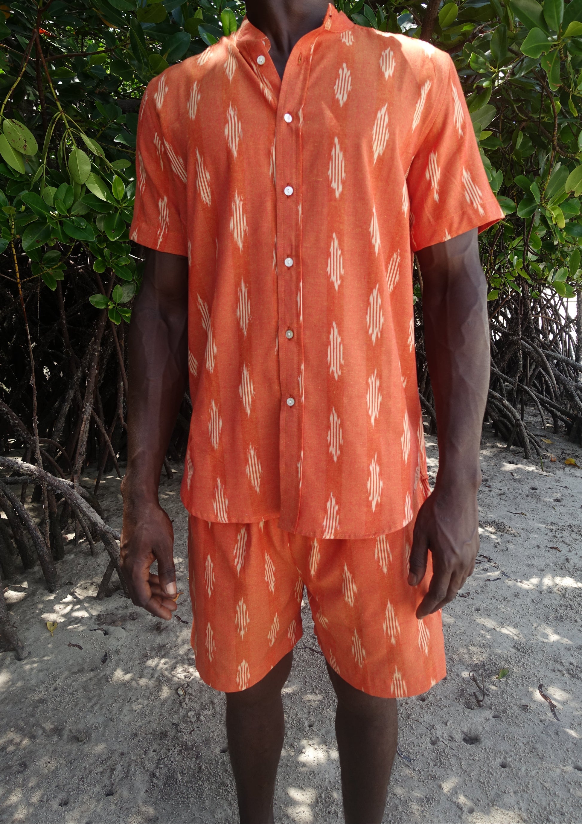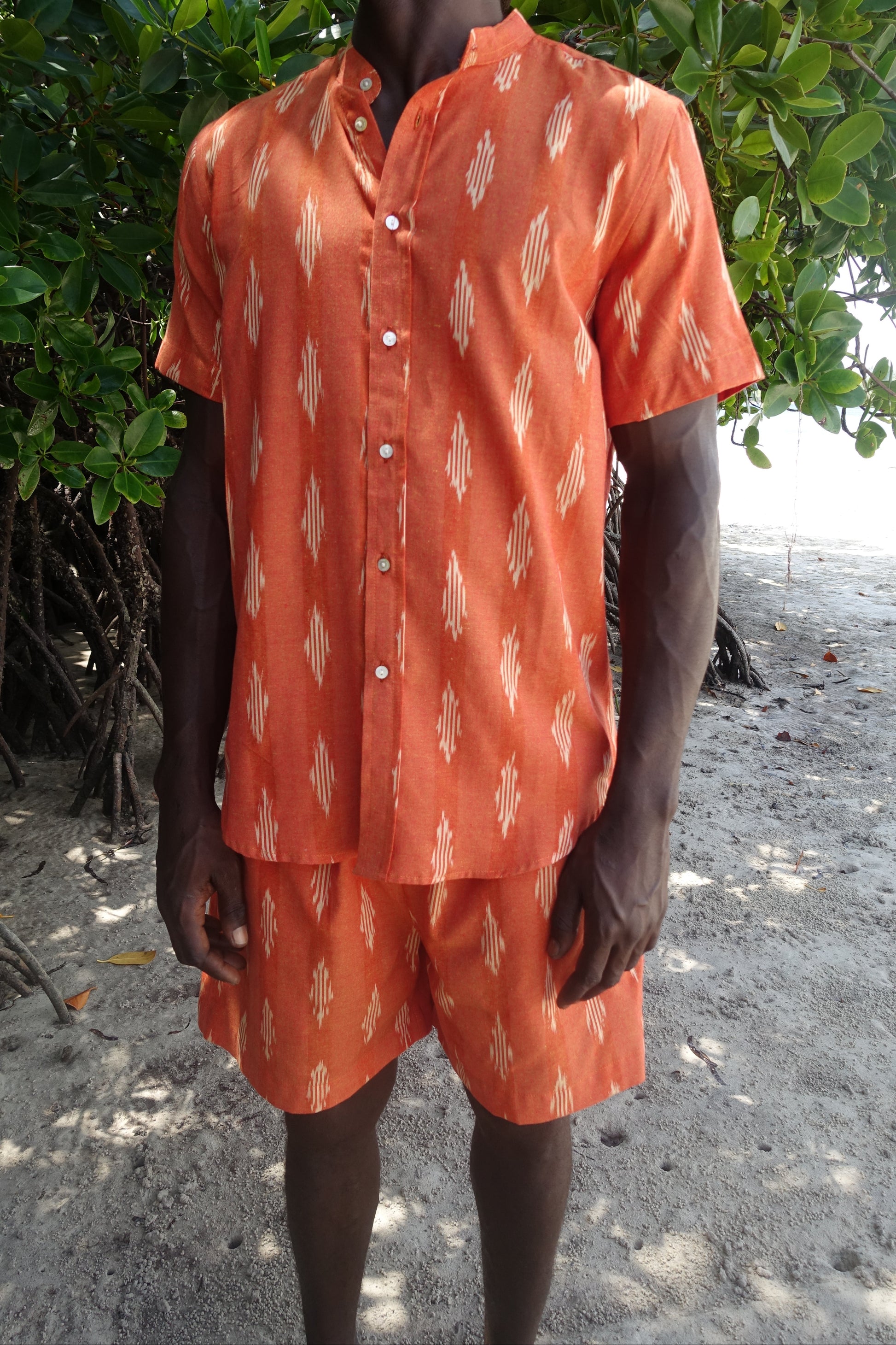 • Set Components: short-sleeve shirt with a korean collar and matching Bermuda shorts