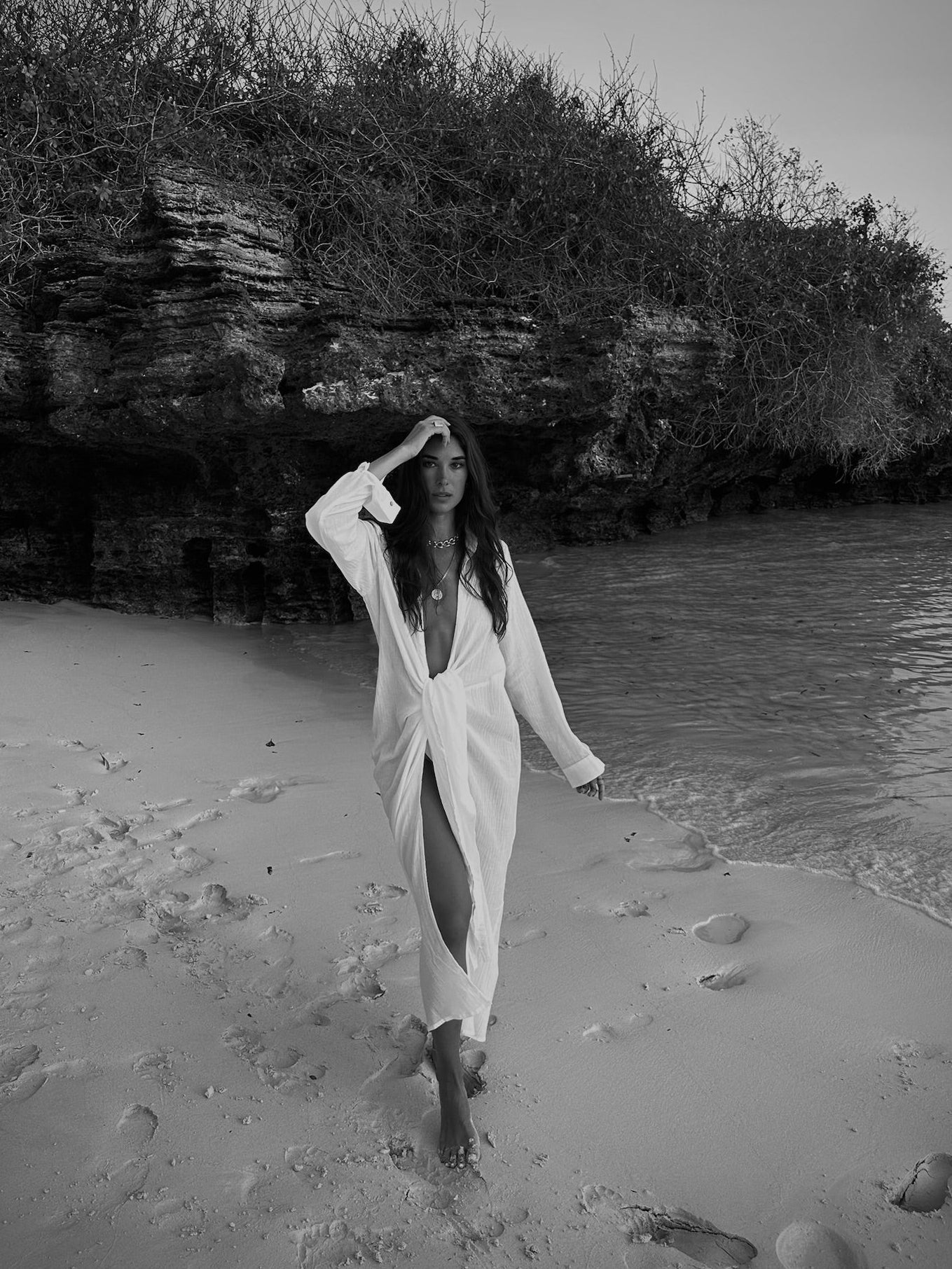 Designed for an effortless, chic look, this knotted long dress features strategic gathers and drapes for a flattering, flowy fit